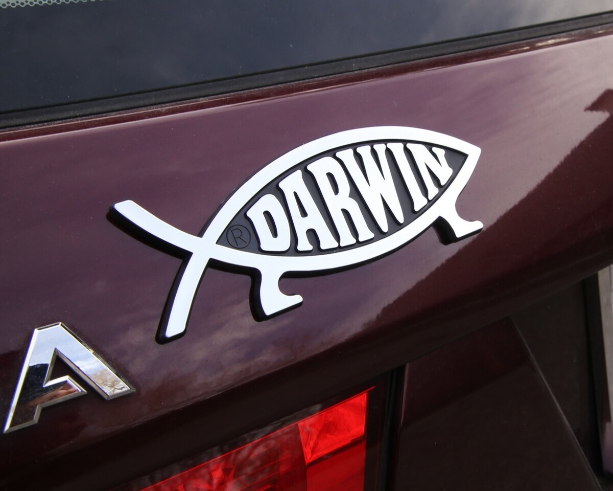 Многие их нас в городе замечают авто с различными непонятными наклейками на нём. Часто даже сами владельцы этих авто, не знают значения этих знаков. Из-за незнания - мы строим догадки. Давайте же разберёмся, что же означает знак рыбки с ножками и со словом DARWIN? Значение. Оказывается, что люди, которые вешают такую наклейку себе на авто, являются сторонниками дарвиновской теории эволюции. И они просто приделывают ножки к обычной рыбке, которая называется ИХТИС. Та в свою очередь обозначает приверженцев христианской веры. А само слово пошло из греческого ichthys — рыба. Такая вот история противостояния представителей двух мировоззрений выраженная в знаках на их авто. Понравилась статья, ставьте лайк и подписывайтесь!