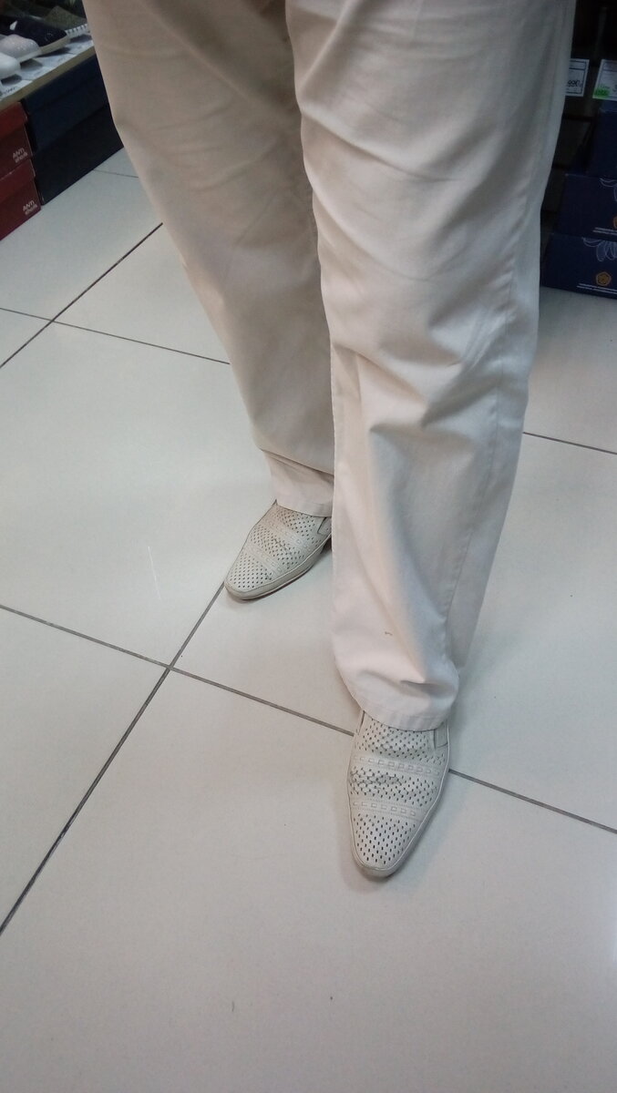 Вы когда-нибудь приобретали брюки с разными штанинами по длине? Нет? А когда нибудь проверяли штанины по длине в магазине? Тоже нет? А зря! После этого случая я бы вам рекомендовала чуть ли не прикладывать одну штанину к другой прямо на прилавке в магазине. Сейчас мужчина приобретает у меня шикарные классические туфли и естественно мы обсуждаем, смотрим в зеркало и пытаемся понять подходят ли данные ботинки под брюки или нет. И вот глядя в зеркало замечаю, что брюки разные по длине и при этом разница совсем не маленькая. То есть то, что длина разная отлично видно даже и без линейки. Я в шоке! Ну где-то сантиметра на 2-3 точно. Мужчина сам был в шоке, стал каким то образом поправлять брюки и пытаться выпрямить длину, но в данном случае хоть поправляй их, хоть нет, а суть все одна. Если одна штанина больше другой, то это сразу видно! Я конечно же предложила идти и сказать о данном факте в торговую точку, где приобретались данные "удивительные" брюки. Брюки мужчина купил где-то неделю н