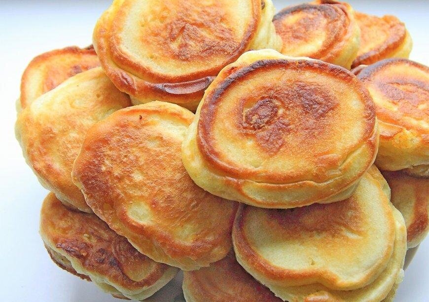 Обжарить оладушки с одной стороны и прикрыть крышкой на 2 минуты. 7. Затем нужно снять крышку и перевернуть оладья.