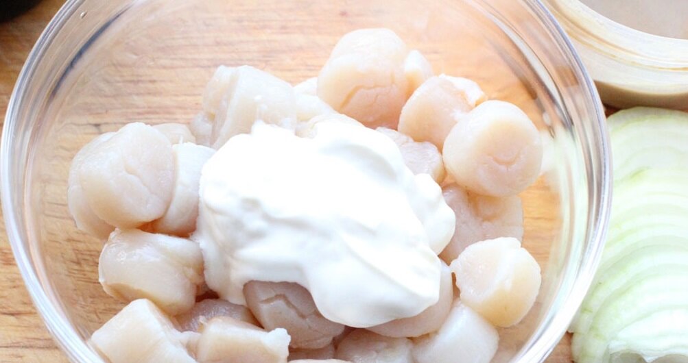 Два варианта использования мелкого гребешка в мужских закусочных целях. Мелкий гребешок практически не нуждается в термической обработке. Если к вам нагрянули гости то подойдет вариант гребешка в горчичной заправке. На Дальнем Востоке используют вместо горчицы японскую пасту вассаби, она похожа на смесь горчицы с хреном, очень острая. Итак, гребешок размораживаем – сливаем лишнюю влагу. Не варим, и не ошпариваем! Кладем две ложки майонеза, половину ложки горчицы. Тонко режем репчатый лук или порей, заливаем 2 ложки соевого соуса. Перемешиваем и ставим на 15 минут подальше от себя. должна получиться вот такая консистенция подаем на стол, приговариваем, мелкий гребешок достался оказией с Южных Курильских островов, если спросят откуда, уточните с Шикотана (это остров такой) Этот же мелкий гребешок в связи с его плотностью, в сравнении с большим, можно использовать для самой обыкновенной яичницы. Настоящий гурман любит ее есть со сковородки, поэтому берем чугунную сковороду и раскаляем