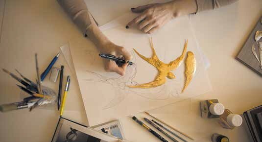 В творческой мастерской Наталии Сальниковой создаются необычные интерьерные картины. В первое мгновение хочется подойти, рассмотреть и непременно узнать, как же это сделано. Спустя некоторое время начинаешь просто наслаждаться объемной гармонией и золотыми отблесками. О том, как художнику удержать в строю капризную музу, а клиенту избежать мук выбора акцентов в интерьер, мы спросили у мастера. Наталия, как вы придумываете картины? Откуда берете образы и сюжеты? Вдохновение я беру отовсюду: это может быть впечатление после прочтения книги, просмотра фильма. Иногда что-то приходит во сне и я даже встаю и зарисовываю. Но, чаще всего, мое вдохновение – в природе. Там есть все: краски, фактуры, сочетания, взаимодействия. И тут возникают идеи, я уже вижу, как буду создавать картину! Это всегда поиск, интереснейший рабочий процесс, и эмоции, которые я хочу передать. Думаю, что все это дают мне свыше, а я уже воплощаю, потому как иначе я это объяснить не могу. Как выбрать картину? Это очень