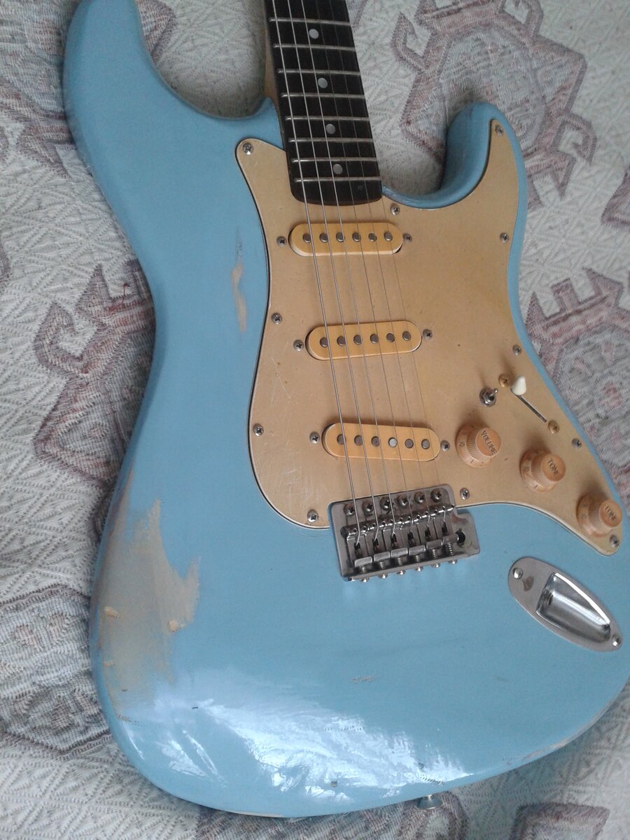 Вот уже не одно тысячелетие, практически со времен сотворения мира интернета, не утихают споры о влиянии на звук гитары дерева, звукоснимателей, ладов, фурнитуры и даже краски. Это все, конечно же, оказывает влияние на звук, иначе все гитары звучали бы одинаково. Чтобы мой монолог не выглядел как священное писание адептов «деревянной теории», далее я буду писать о том, в чем убедился на собственном опыте. Сегодня я расскажу вам про страты. Раньше я, как и многие, покупал гитары, но с определенного момента я стал покупать все комплектующие, в том числе корпус и гриф, отдельно. И так получилось,что у меня одновременно оказался японский греко 81 года и страт, который я собрал сам. Греко был из ольхи (покрытие неизвестно) с кленовым грифом и палисандровой накладкой, шестиболтовое тремоло и колки типа Kluson фирмы Gotoh. Greco. Мой страт был из белого (тяжелого) ясеня (полиуретан) с кленовым грифом без накладки, тремоло и колки были условно такими же, тоже фирмы Gotoh. На греко были т