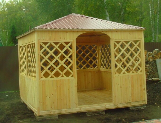 Большинство дач предназначено для летнего отдыха. Построить беседки своими руками для дачи просто, так как чаще всего они открытые или полузакрытые, не обладают большой площадью. Главное, чтобы имелись навыки работы с выбранным материалом и новое строение гармонично вписалось в ландшафт. Предварительные работы Любая работа требует тщательного планирования. Сбоку беседки для дачи нельзя начинать, пока не выбрано место, размеры, форма, материал. Постройка этого типа может быть открытая или полузакрытая. Формы беседок бывают разные, для начинающего строителя проще прямоугольник или квадрат. При определении размеров стоит учесть, что комфортное использование возможно только в том случае, если на 4-6 человек приходится 3-4 м². Оптимальная высота 2,3 м. Каркас можно собрать из металла (труб или уголка) или древесины (бруса). При выборе первого варианта нужен сварочный аппарат и умение им пользоваться. Строения из бревен и кирпича подходят для больших коттеджей, для дачного участка они слишк