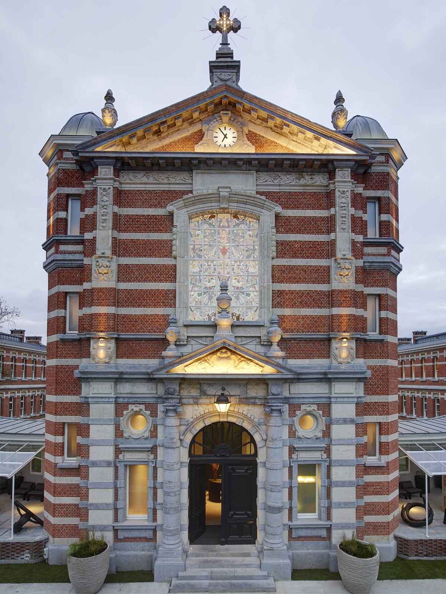 Шеф-повар Серхио Херман (Sergio Herman) вместе с Ником Брилем (Nick Bril) и Питом Буном (Piet Boon) сумели создать ресторан с изысканной кухней и рок-н-рольной атмосферой в мифическом месте Антверпена – в часовне бывшего военного госпиталя. За дизайн интерьера и оформление The Jane отвечала Piet Boon Studio. Опыт работы специалистов бюро позволил превратить часовню в современный ресторан высокого класса, прославившегося на весь мир. Дизайнеры твердо верят в аутентичность, функциональность и материалы, которые «красиво стареют», поэтому решили восстановить в часовне только самое необходимое, а остальное сохранить максимально нетронутым. Оригинальный потолок – фокус пространства, который «собирает» все элементы воедино и создает особую атмосферу, уважительную к истории, но при этом абсолютно современную. Алтарь уступил место кухне, которая, словно святыня, покрыта стеклом. Так гости могут видеть все, что повара для них готовят. Все трое – Херман, Бриль и Бун – страстно любят работать с