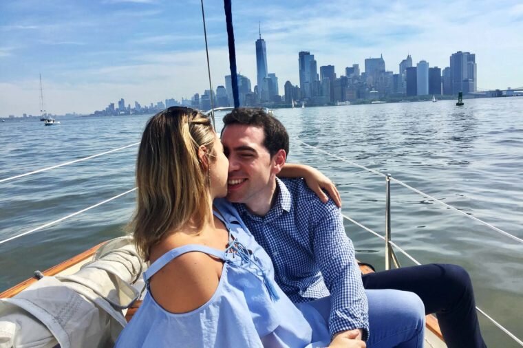 В отпуске уроженка Австралии австралийка Кара Ландау обнаружила, что танцует в подвальном помещении в районе упаковки мяса в Нью-Йорке, а не в своем обычном месте. На танцполе она увидела Джеймса, ирландца, который жил в Нью-Йорке. После одновременной улыбки, она указала Джеймсу, как будто говоря «подойди». Он сделал двойной дубль и оглянулся, чтобы убедиться, что она действительно указала на него. Они не спали всю ночь, переходя с места на место, чтобы танцевать. Они танцевали до закрытия в Бруклине и вместе наблюдали восход солнца над горизонтом Манхэттена. В течение недели они переехали вместе, в течение месяца они вместе нашли новую квартиру, а через три месяца он полетел в Австралию, чтобы встретиться с ее семьей и присоединиться к ней на ее 30-летие. В течение девяти месяцев летним утром в Нью-Йорке Джеймс устроил чартерную яхту на реке Гудзон, опустился на одно колено и сделал предложение. Возвращаясь к ночи в баре, Кара говорит: «Когда мои подруги предложили нам пойти в этот ба