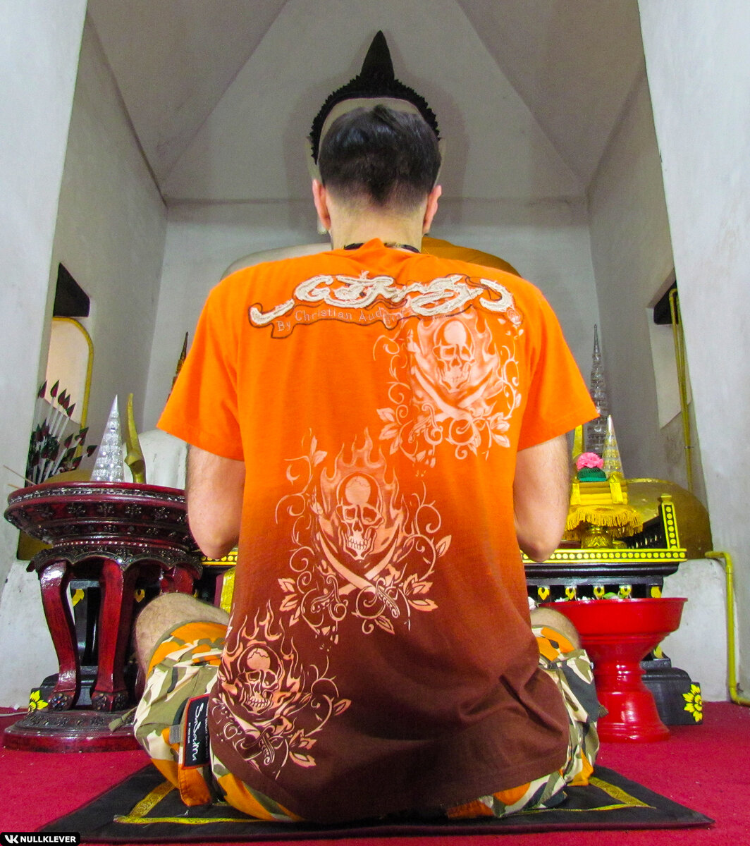 Этот храм находится через дорогу от известного и популярного Wat Phra Singh в Чиангмае. Храмовый комплекс состоит из двух вихарнов* и пагод (чеди). Мне повезло и я оказался здесь единственным посетителем. Только когда я уже шёл на выход, стали подтягиваться другие люди. Так как я заходил не с основного входа - с дороги, а проехал в переулок, чтобы припарковать мотобайк, первым что я увидел было большое дерево. Основание дерева укреплено пьедесталом, выложено плиткой и у дерева сидит статуя Будды. Дерево было почти без листвы, а на панораме google-maps оно все утопает в зелени! Вихарн и чеди рядом с деревом: Второй вихарн, за ним тоже стоит чеди. Видно, что храм довольно старинный, о чём говорит использование деревянных балок в качестве угловых столбов, а также старение каменного фундамента. Лестница, ведущая ко входу в храм, содержит больших нагов (мифологических змей), охраняющих здание. Внутри храма также видно преобладание деревянных конструкций: Будды и расписанная стена: Уникаль