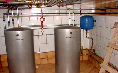 В качестве дополнительных составляющих, предусматривают насос циркулярного типа, кран, через который можно сливать воду, и насосно-смесительный узел.