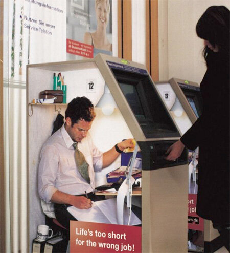 Однажды стоя в очереди к единственному работающему банкомату, который был установлен в торговом зале, я услышал разговор мальчика, лет 5-6 и его мамы и папы. Он спрашивал, как работает банкомат и мама с папой, видимо бывшие КВНщики «искрометно шутили» на эту тему. - Сына, там внутри маленький печатный заводик, ты набираешь сумму, которую тебе надо напечатать, и заводик начинает быстро-быстро печатать, свежие купюры!- начал шутить глава семейства. - Папа шутит, - прервала его мать, и слегка ударила мужа локтем в бок, - там внутрь сажают непослушных мальчиков, которые не наводят порядок в своей комнате, и они выдают деньги целыми днями и ночами, так и растут, в тесноте, в темноте и неудобстве. - Да и иногда туда сажают плохих девочек, которые не отпускают своих мужей на рыбалку! - переключился на жену обиженный отец. К моему счастью очередь быстро подошла к кноцу и это семейство поняв что карточку они забыли в машине, ушли, ругая всех подряд. Один только