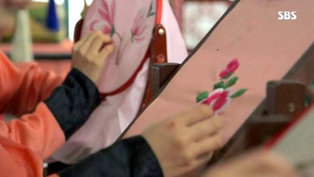 Но, видимо, это волшебная вышивка. Она потом материализовалась целой и невредимой в комнате опальной и сосланной из дворца королевы Инхён.