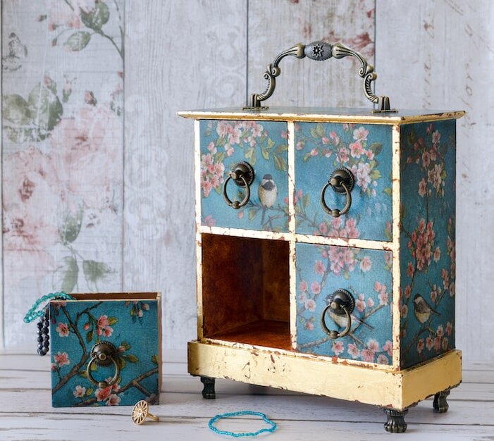 Декупаж — это техника приклеивания кусочков бумаги или ткани к поверхности изделий в качестве декора. А изделия, выполненные в этой технике — достаточно простой и бюджетный способ украсить и обновить интерьер. Само слово «декупаж» происходит от французского глагола «резать/вырезать». А уж французы знают толк в моде! И то, как из простых кусочков получить стильное произведение искусства! Но пусть французские слова вас не пугают, техника эта очень простая и её легко освоить. Всё, что вам необходимо — поверхность, которую вы хотите обновить, несколько рукодельных приспособлений и желание творить. Итак, что Вам понадобится: — Поверхность для декора (изделия). Можно взять любой старый стул или комод, а можно купить специальные заготовки для декупажа. Например, шкатулка, кухонная доска, кружка или панно. Самые популярные изделия - деревянные. — Бумага для декора. В магазинах есть невероятных выбор бумаги для декупажа с самыми различными сюжетами и узорами. Но так же для этого можно исполь