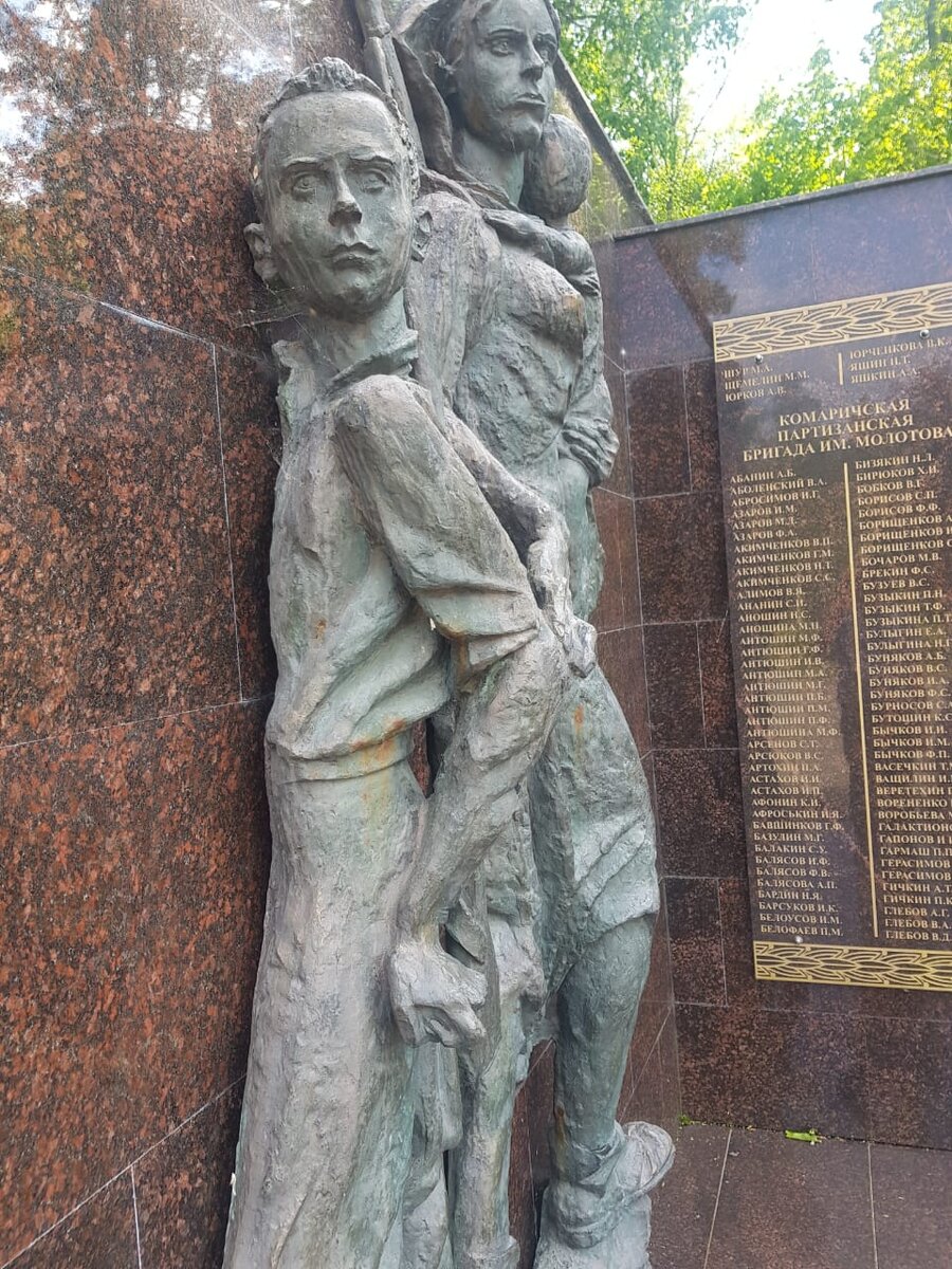 НА "ПАРТИЗАНСКОЙ ПОЛЯНЕ" ПОД БРЯНСКОМ НЕ ПАТРИОТИЧНО РЖАВЕЮТ БАРЕЛЬЕФЫ НА СТЕЛАХ С ИМЕНАМИ ПОГИБШИХ ГЕРОЕВ И ВОЕННАЯ ТЕХНИКА - ЭКСПОНАТЫ ВЫСТАВКИ ПОД ОТКРЫТЫМ НЕБОМ... ----- Брянские власти очень любят показывать высоким иногородним гостям мемориальный комплекс "Партизанская поляна", располагающийся в 20 км от областного центра, недалеко от поселка Бело-Бережский санаторий. Это своего рода местная "патриотическая витрина": чисто, красиво, в меру скорбно. У гранитной "Стены памяти" – главного монумента мемориального комплекса горит Вечный Огонь, который называют "Сердцем Поляны". Также есть большая и внушительная выставка военной техники, списанной Министерством обороны и прошедшей демилитаризацию в 2006 году, - это единственная такая экспозиция на территории региона. В 2019 году "Поляна" серьезно разрастется (согласно утвержденной Концепции развития). Рядом с ней, на месте бывшего "милицейского" пионерского лагеря "Сосновый бор" создадут детский Военно-патриотический лагерь. Сейчас это