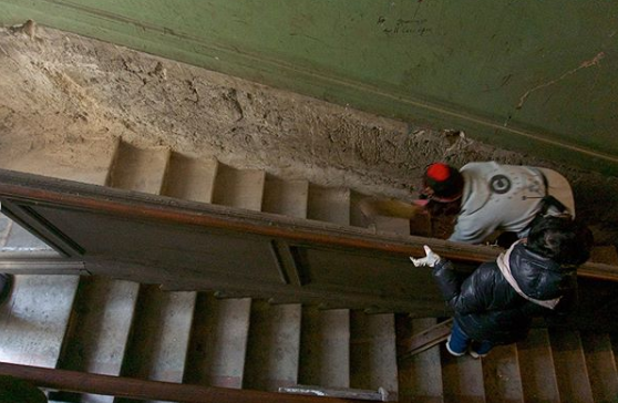 Во время уборки из-за панелей достали 300 литров мусора. Петербургские краеведы из объединения «ГЭНГЪ» закрепят настенные деревянные панели в парадной дома № 21 на 2-ой Советской улице. Об этом рассказала участница объединения Ксения Сидорина. Закреплять панели будут 31 мая. Работы проведут вместе с КГИОП и Союзом реставраторов. Местами дерево утрачено — фрагменты заменят вставками из тонированной фанеры. Работы оплатят на деньги, собранные во время краеведческого фестиваля «Крайкон». Сейчас панели отходят от стен и могут обрушиться в любой момент, сообщила Ксения. За панелями также скапливается мусор. Во время уборки краеведы и волонтеры достали оттуда около 300 литров мусора. Дом № 21 на 2-ой Советской улице — бывший доходный дом Бернштейна. Его построили в 1901 году. Здание является выявленным объектом культурного наследия. Петербургские краеведы из объединения «ГЭНГЪ» регулярно убираются в парадных в центре Петербурга. Они уже отмыли отмыли финскую печь в доме на улице Жуковского,