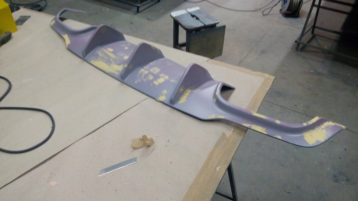 Подготовка и покраска в черный глянец тюнингованого диффузора заднего бампера, под четырех ствольный выхлоп AMG. Диффузор приехал с Москвы , довольно низкого качества , весь в порах и трещинах. Пришлось несколько раз грунтовать ,шпатлевать и шкурить накладку. Два раза красить. И даже после этого не удалось добиться безупречного качества. Но в целом достойный результат. Использовали для покраски автомобильную базисную эмаль и акриловый глянцевый лак Brulex.