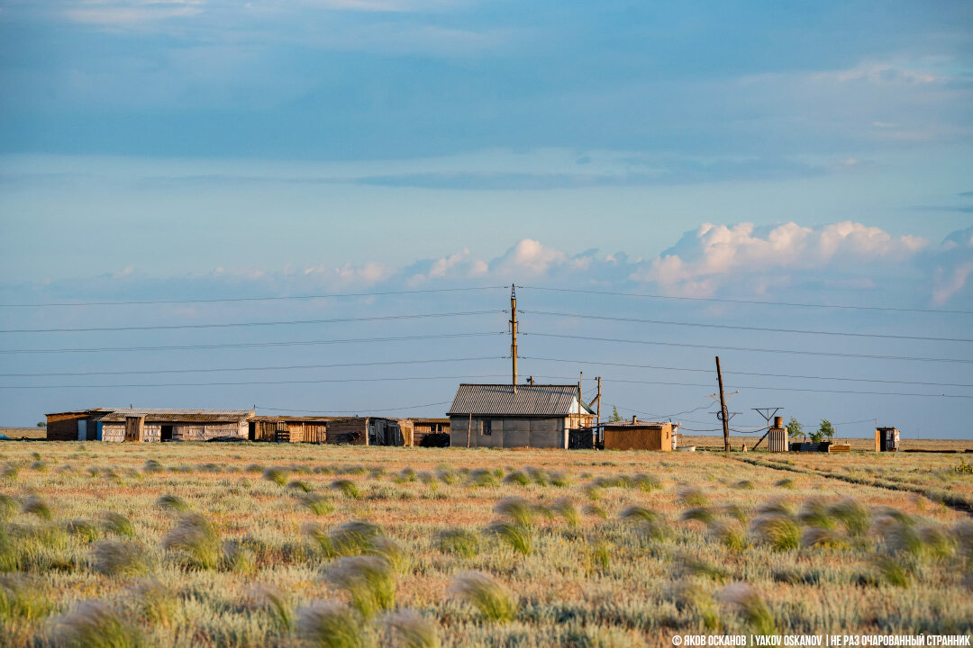 Когда живёшь в городе, твой выбор где и что есть значительно богаче. Кто-то предпочитает питаться исключительно домашним, а кто-то наоборот – заказывает готовую еду на дом. А кто-то не любит есть дома и питается в кафе или ресторанах. И выбор огромный и диапазон цен довольно широкий. Когда же ты едешь куда-нибудь в глубинку, где в населённых пунктах число жителей исчисляется сотнями, то не факт, что ты, вообще, найдёшь кафе, а если и найдешь, то не факт, что тебя устроят ассортимент и цены. И тогда выход один – покупать "сухпай". Желательно заранее, дома. Поскольку мне приходилось заезжать в места, где даже хлеб купить – проблема. Последним оплотом цивилизации перед соляным озером Баскунчак лежал город Ахтубинск. Земли в этих краях весьма просоленные, а потому сельское хозяйство представлено в основном чабанами и их кошарами, которые не образуют больших деревень. Выглядит это примерно как на фото выше. Чуть дальше, на восток, в часе езды находится озеро Баскунчак, а за ним – граница с