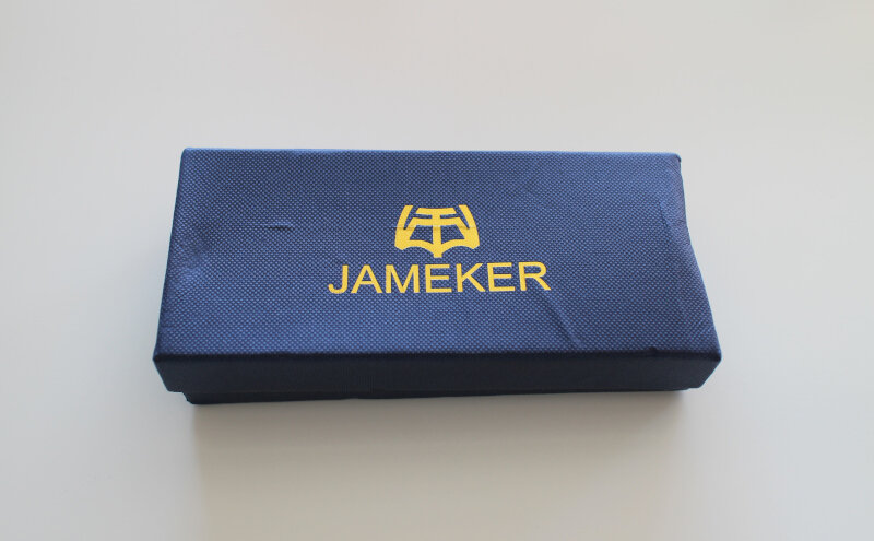 Часы пришли в коробке из плотного синего картона, что является классическим решением для многих часов, которые поставляются из Китая. Единственное, что сразу смутило, часы мы заказывали от фирмы Forsining, а на коробке красуется логотип от фирмы Jameker.
