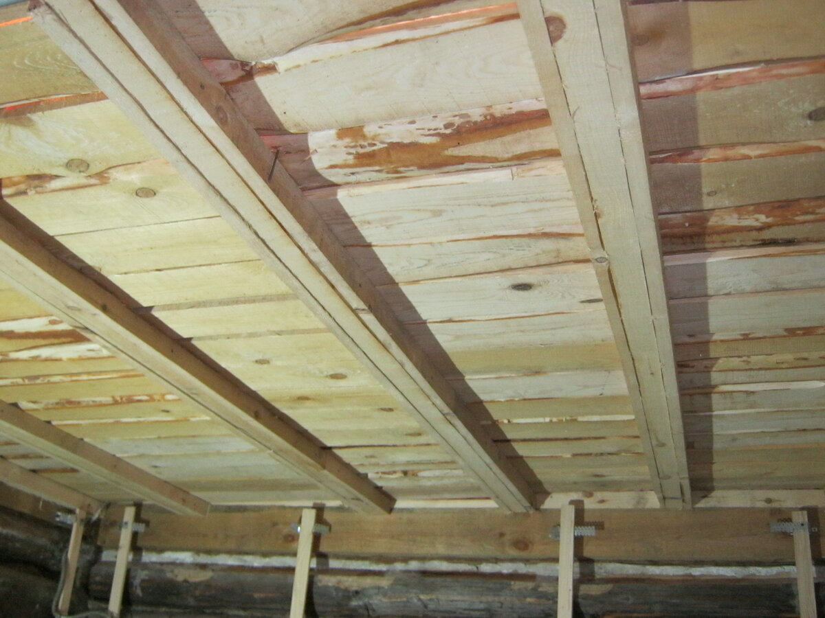 Старый потолок сгнил... Высота сруба мала (185 см где-то). Принято решение убрать старый и сделать новый выше. 1. Демонтировал старьё. 2. Запихал наверх брус 150*150. Прижал к срубу глухарями 180*6. Теплый шов делать не стал (сруб находится внутри кирпичного пристроя). 3. Выставил лаги 50*150 на ребро с шагом 470мм, те, что на фото слева шире из за противопожарный мероприятий у печи. Крепил на 90 уголок с усилением на желтые саморезы по 6 шт. в каждую сторону. 4. Пришил черепной брусок. 5. Перекрыл дюймовкой обрезной второго сорта, обзол почистил. Поверх планируется фольгированая крафт-бумага и опилки. 6. Обшил потолок фольгированой крафт-бумагой с нахлестом 5-10 см. заклеил швы метализированым скотчем. 7. Пришил контррейку для вентзазора и обшил вагонкой. Итоги: замечаний пока нет.