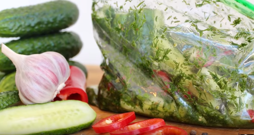 Отправить салат в пакете, в холодильник на 1-2 часа.