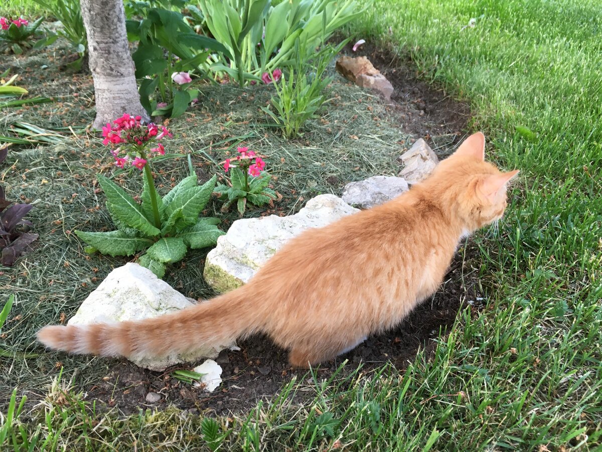 Все мы когда-то были маленькие...И у каждого в памяти хранится какая-нибудь история о том, как он впервые вышел во двор, где встретился с другими ребятишками... Я вот например помню, как соседская рыжая девчонка "угостила" меня сливами в нашу первую встречу :)) ( Я пишу в "угостила", потому что потом оказалось, что сливы были немытые и недозрелые :)) Но вчера состоялась совсем другая первая встреча. Сейчас пишу эту статью .... и улыбаюсь, потому что это так .. забавно :) У нас два кота (Тихон - вислоухий британец и Васька - главный кот на районе). А у соседей тоже теперь два кота. Полосатый Маркиз, который постоянно к нам ходит поесть, и маленький рыжий Семка, которого вообще-то брали для дружбы с Маркизом. Семку стали понемногу выпускать на улицу, и он уже видел Ваську... Но вчера он впервые увидел Тихона, который сначала незаметно шел за ним сзади: Ой, видели бы Вы, как Семка испугался сначала:) Он спрятался на клумбе: Но... природное любопытство все-таки сильнее... Хотя, посмотрит