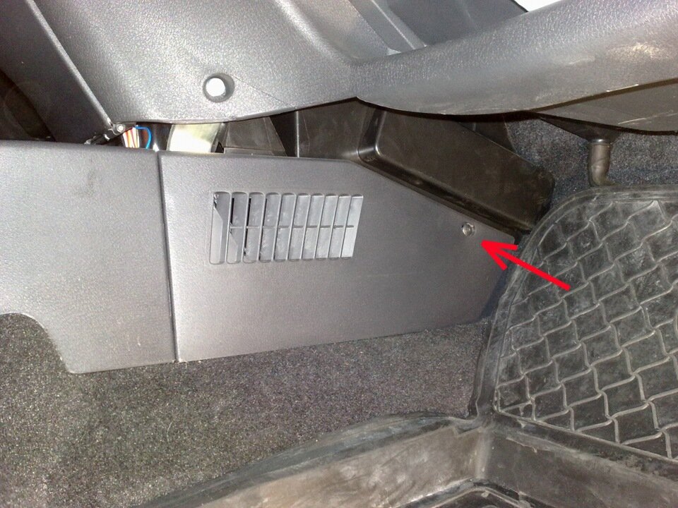Со стороны ног пассажира откручиваем винтик, удерживающий крышку тоннеля