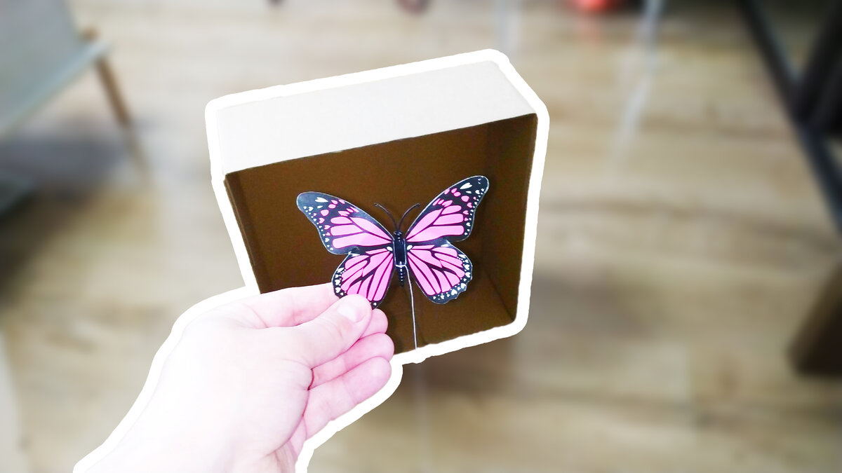Не вздумайте выбрасывать картон, оставшийся от мебели или чего другого. Я раньше тоже выбрасывал картон, но потом понял, что можно делать интересные поделки для своего ребенка. Каждый раз, когда мы покупали что-нибудь для дома, оставались коробки от мебели “Ikea”. Никогда не задумывался их оставлять, сразу выбрасывал на помойку. А сейчас, когда дочка растет и ей все интересно, становиться и мне интересно, особенно делать разные поделки. Вот и на этот раз вместе с дочкой решили сделать интересную игрушку своими руками из оставшейся коробки от стула из икеа. Если кто не читал, какой мы купили стул, то статья здесь! Что нам понадобиться: Как делать интересную игру из коробки и бабочки: На этом можно остановиться и наслаждаться летающей бабочкой по коробке, передвигая неодимовый магнит в стороны. Но мне показалось этого мало, попросил дочку помочь мне разукрасить коробку. Придумал тему, дал дочке краску, кисточки и приступили к раскраске. Разукрашивали вместе, но через некоторое время дочк
