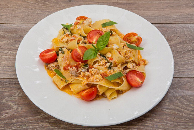 Итальянское блюдо паста имеет множество вариаций как в приготовлении, так и в составе различных ингредиентов. Мы подготовили для вас легкий и вкусный рецепт с доступными продуктами и быстрым приготовлением. Сложность приготовления: 4/10 Ингредиенты: (Рассчитано на 6 человек) Филе куриное - 500 гр Спагетти - половина упаковки Лук репчатый - половина крупной головки Помидоры - 1 целый + половинка Болгарский перец - 1 шт Растительное масло - 1 ст ложка Зелень (кинза или петрушка) - половина пучка Чеснок - 1 головка Паприка молотая - по вкусу Соль, перец - по вкусу 1. Филе куриное промыть, протереть салфеткой и нарезать небольшими кубиками. На растительном масле обжарить курицу до появления небольшой корочки. 2.Добавить в сковороду нарезанный соломкой болгарский перец. Лук нарезать кубиками и добавить сразу же за болгаркой . Тушить с закрытой крышкой около минуты. 3. Помидоры желательно очистить от кожуры и нарезать средними кусочками. Добавить томаты к курице и перцу, перемешать и тушит