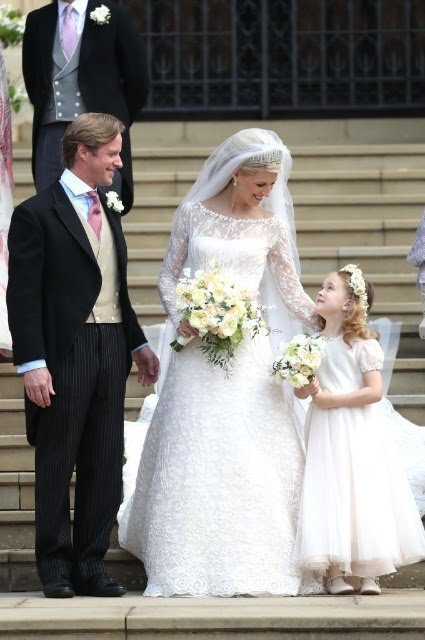 19 мая 2018 года весь мир любовался торжеством Меган Маркл и принца Гарри. И вот почти ровно через год состоялась свадьба леди Габриэллы Виндзор – дочки двоюродного брата королевы Елизаветы II и финансиста Томаса Кингстона. Церемония парочки также как и Меган с Гарри прошла в часовне Святого Георгия, а после праздник переместился, как и у Сассекских, в Frogmore House, куда были приглашены лишь самые близкие родственники и друзья. Украшением образа 38-летней невесты помимо ее счастливой улыбки стала тиара, усыпанная бриллиантами, которую носили ее бабушка – греческая принцесса Марина и мама – Мария Кристина фон Рейбниц. Молодожены, взявшие курс на скромность, решили отказаться и от катания на карете за пределами замка. С небольшой частью гостей можно ознакомиться на фото. По неизвестной причине среди них не было принца Уильяма и Кейт Миддлтон, от семьи которой присутствовала сестра с мужем, брат с девушкой и родители. Также не появилась и Меган Маркл, поглощенная иными заботами, а вот