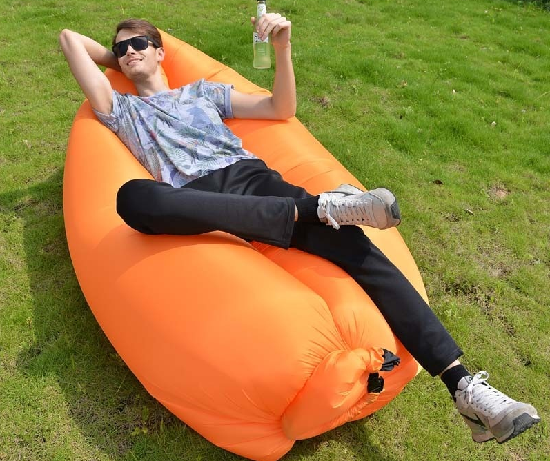 Надувать не нужно, быстрое движение в он наполнен воздухом. Легкое наполнение воздухом Единственно сто у нас не получилось наполнить его дома, но на природе и где много места, а лучше чтобы еще был ветерок, диванчик наполняется воздухом одним движением. При этом настолько компактный что занимает очень мало места и ничего не весит, а выдержать способен вес даже нескольких людей. Мы всегда берем такие диваны на отдых, пляж, в лес в поход и иногда используем на даче, именно благодаря тому что он занимает мало места и нет необходимости таскать за собой насос он стал нашим любимчиком. Краш тест Единственно что его необходимо беречь от друзей которые его сразу же заходят протестировать, или может только у нас такие друзья :) В общем если прыгнуть на него сразу трем здоровым мужикам он лопнет как полиэтиленовый пакет, лучше не доверяйте его никому иначе останетесь без дивана. Вот ссылка на все предложения по этим диванчикам чтобы вам было легче найти, цены начинаются от 750 рублей: Надувные д