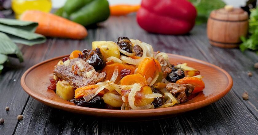 Цимес — старинное традиционное блюдо еврейской кухни. Это жаркое, которое готовят из мяса, моркови и сухофруктов. Как правило, это основные ингредиенты, но со временем цимес стал многовариантным блюдом: в соответствии с традициями местности и вкусами семьи. Польские евреи делают его более сладким, а евреи Литвы — менее. Такое блюдо — гарнир, если в нём нет мяса, второе — если вы добавляете говядину или грудинку, и даже холодный десерт — если в нём только морковь и сухофрукты с добавлением мёда. Следуйте инструкциям ниже, чтобы приготовить одну из вариаций цимеса. Мы предлагаем добавить также картофель и лук, душистый перец и перец чили. Сочетание острого и сладкого просто идеальное. Одним словом, если вы любите жаркое, обратите внимание на такой оригинальный рецепт. Ингредиенты Как приготовить цимес – старинное блюдо еврейской кухни Перед подачей цимес нужно аккуратно перемешать ложкой. Чем больше различных сухофруктов вы используете, тем насыщеннее будет вкус готового блюда. Яркое,