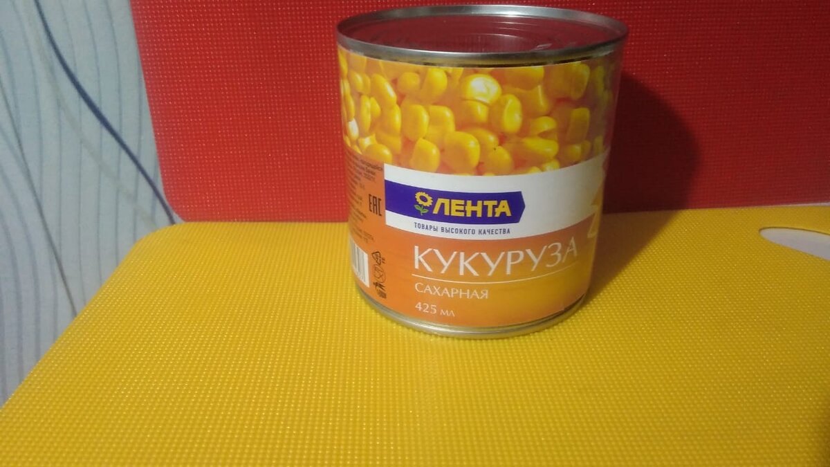 Данный отзыв не является рекламой и никем кроме меня не оплачен.Данное мнение сугубо личное и носит ознакомительный характер. Всё нижеописанное испытано на себе любимом. Понеслась!!!)) Шарился по "ЛЕНТЕ" решил замутить крабового салатика. Я и раньше лицезрел сие чудо, но предпочитал "Бондюэльку". Но деньги имеют свойство кончаться, а тут акция!!! Так кукуруза "ЛЕНТА" сахарная перекочевала с полки магазина, в мою тележку. Ценник 70 рублей. (по акции 50 рублей). На банке был замечен маркетологический ход. Это цифра 425! Но не грамм, а миллилитров! Реальный вес указан на обратной стороне банки.)) Ну да ладно... Нормальное явление.) Состав огонь! Никаких консервантов (от слова вообще). Только кукуруза, вода, соль и сахар. Срок годности аж 4 года. Можно запастись впрок. Интересно, что изготавливают эту консерву по заказу "ЛЕНТА" два завода, находящихся в Краснодарском крае. ООО "Бондюэль-кубань" (возможно производитель бондюэли). И ООО "Кубанские консервы". Отличить их мож