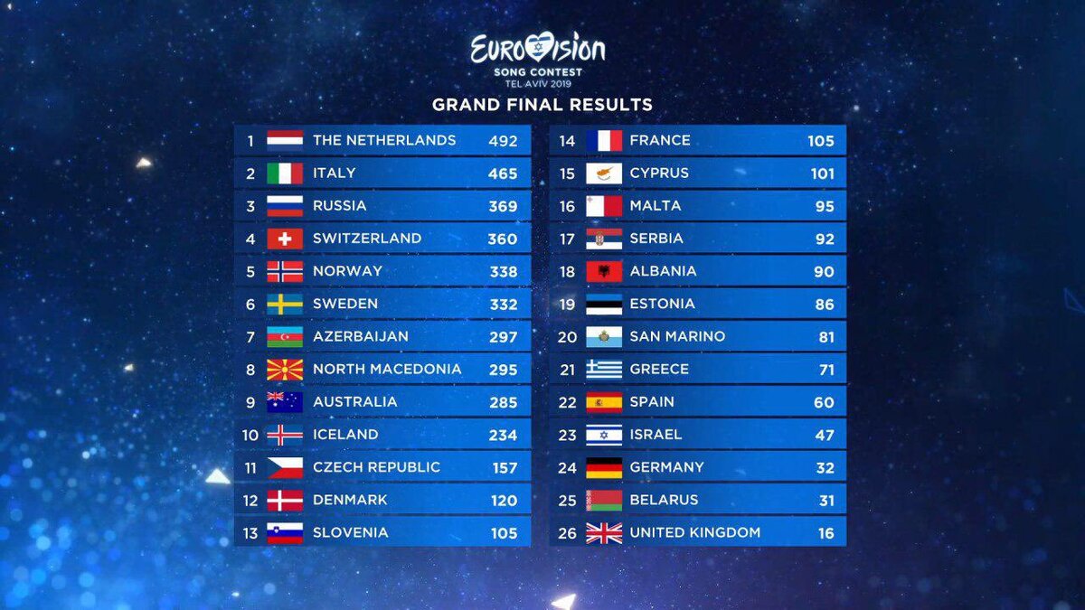 Впервые за последние 44 года Евровидение едет в Нидерланды (Голландию). Сергей Лазарев - третий. Бывшие «братские» не особо проголосовали.