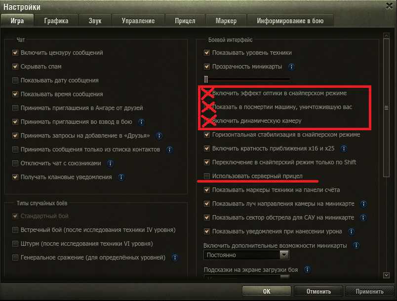 Различные эффекты однозначно отключаем, что бы не проседал ФПС и не отвлекаться в от игры. Серверный прицел на усмотрение, в большинстве случаев он выручает, но у меня пинг низкий, поэтому я играю без него.