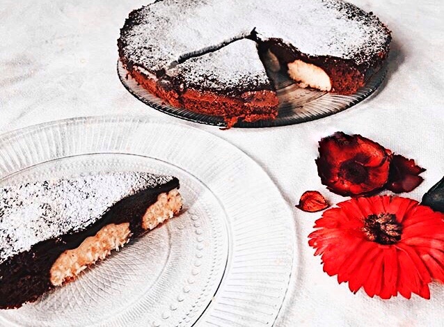 На этот раз я хочу поделиться с вами не завтраком, а рецептом нежнейшего пирога у него очень необычный вкус, напоминает шоколадное мороженое с кокосовыми шариками и готовится очень легко. Ведь сегодня выходной и это прекрасный повод собраться всем вместе за одним столом после длинной рабочей недели, выпить свежезаваренный чай и побаловать свою семью домашней выпечкой. Ингредиенты: Творожные шарики: · Творог – 250 гр. · Желтки – 2шт. (белки оставить на тесто). · Сахар – 50гр. · Кокосовая стружка – 50гр. · Крахмал пищевой – 30гр. Бисквит: · Яйцо – 4 шт. + 2 белка (которые остались от творожных шариков). · Мука – 100гр. · Сахар – 100гр. · Какао – 2 ст. ложки. · Крахмал – 20гр. · Разрыхлитель – 7гр. · Ванилин – 1гр. Глазурь: · Шоколад – 1шт · Молоко – 50мл. Приготовление: -Чтобы приготовить творожные шарики нужно соединить творог с крахмалом, сахаром, кокосовой стружкой и желтками, всё хорошо перемешать и сформировать небольшие шарики. -Форму для выпечки застелить пергаментной бумагой и