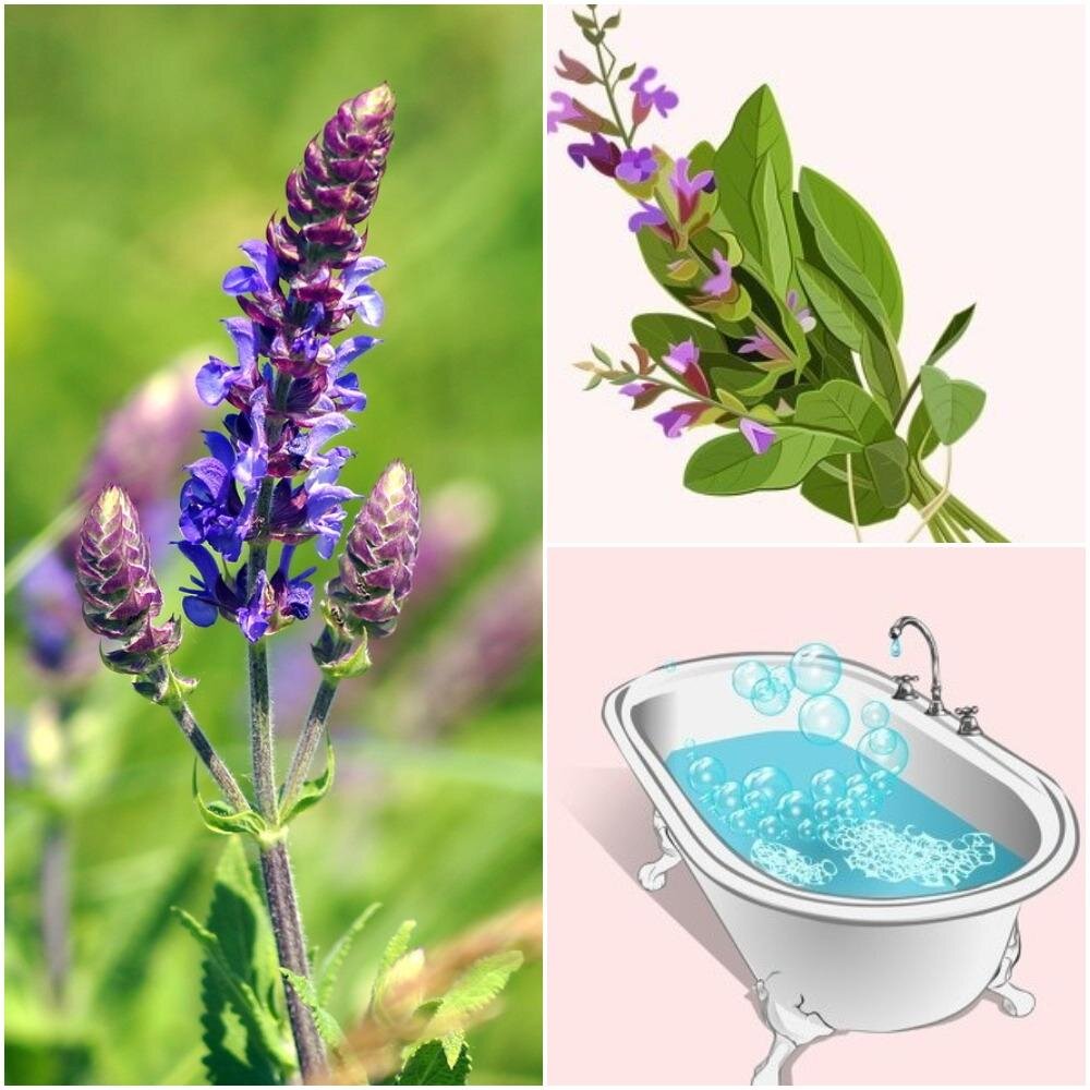 В листьях шалфея содержатся флавоноиды вроде диосметина, апигенина и лютеолина. Также они обладают несколькими целебными свойствами: мочегонным, желчегонным, вяжущим, противовоспалительным отхаркивающим, антибактериальным и кровоостанавливающим. Листья шалфея невероятно полезны в борьбе с потоотделением, особенно если вы добавите их к вашей ванне. Также при желании можно делать отвар из сушеных листьев, а не из свежих. Отличий в результатах особенно не будет.