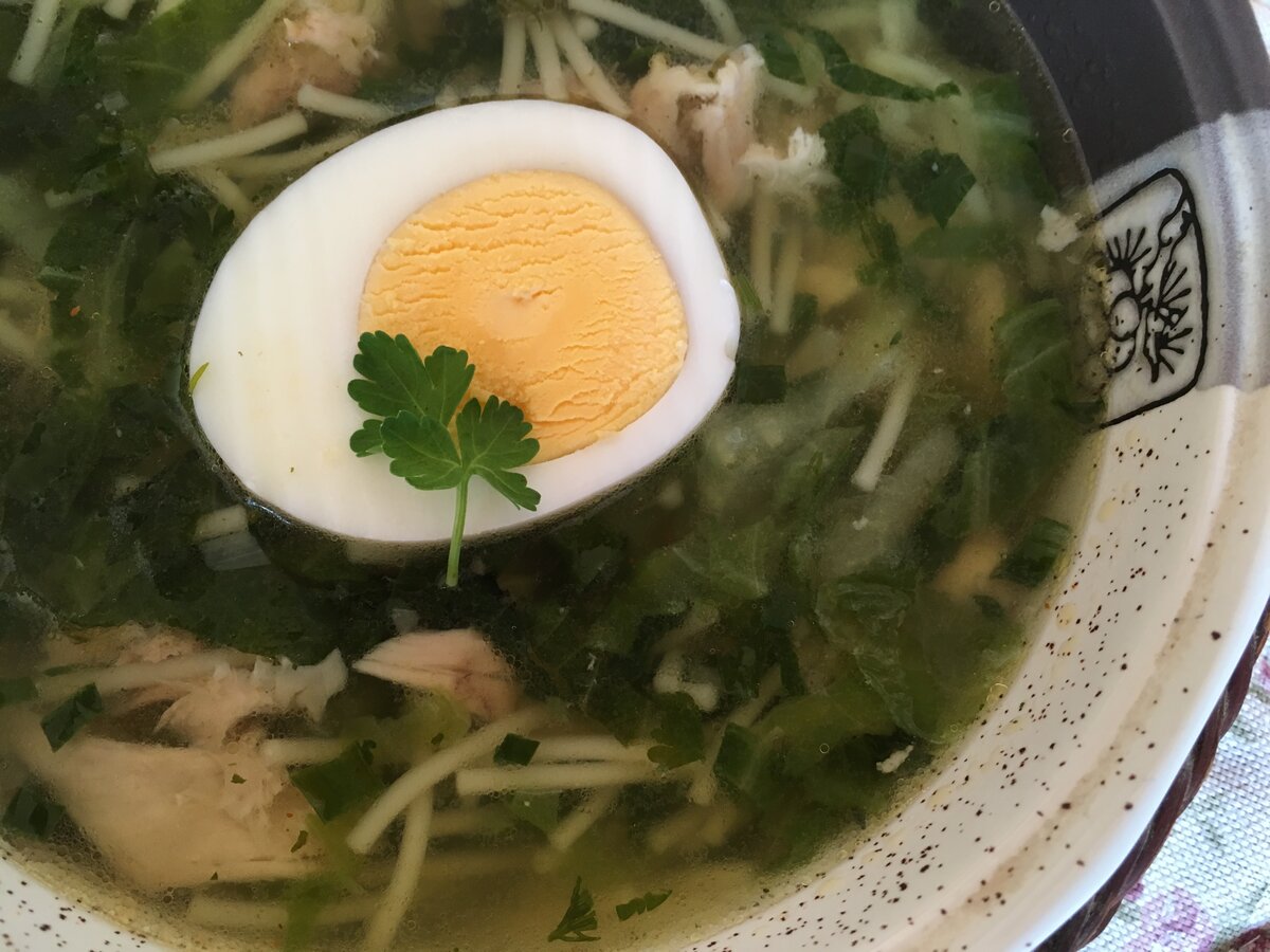В такой супчик не помешает положить половинку яйца, заранее отваренного, остуженного и очищенного. С ним сытнее и красивее, благодаря ему обогащается как вкусовая, так и цветовая гамма.