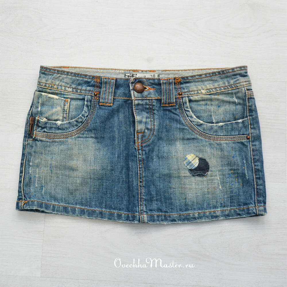 Сочетаем на первый взгляд несочетаемое - плотную джинсу и потертость с нежными ажурными вставками. Кружево и вязанные ажурные ленты способны преобразить обычную и ничем не примечательную джинсовую юбку и одновременно удлинить её до нужных нам сантиметров.