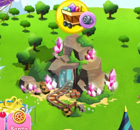 - Алмазная шахте — пони на вагонетке гоняется на рельсах в шахте, где надо собрать как можно больше битсов элементов гармони и камней.