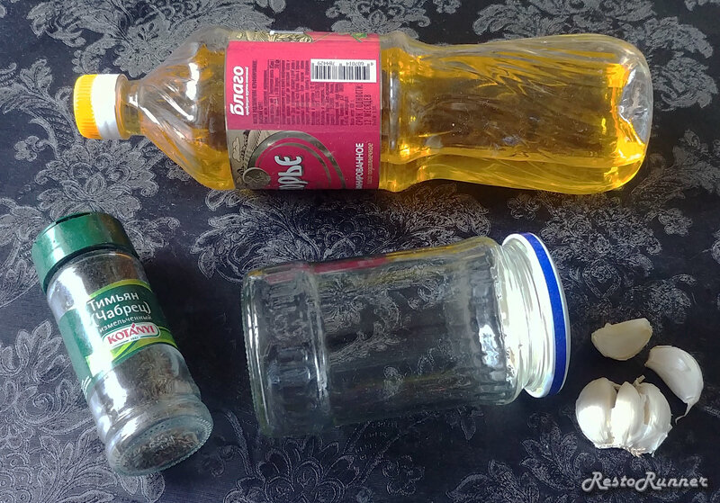 1. Масло, которое вы собираетесь сделать чесночным. Я люблю подсолнечное нерафинированное, но вы можете взять то, что нравится вам.