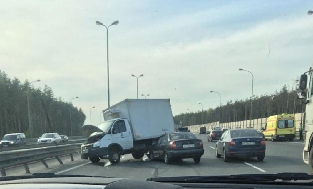 Пробку на КАД собрала авария с одним убитым и двумя пострадавшими. Водителя «Газели» задавило его же автомобилем