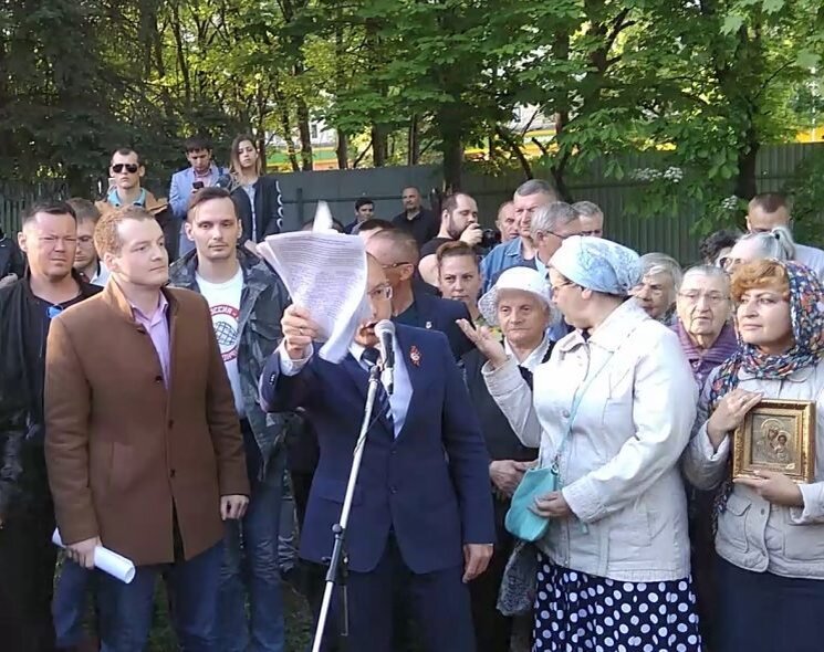 «Я за храм, но не здесь», — закончил свое выступление Кузин. Верующие ответили выкриками: «Врешь!», «Уходи отсюда, красный!».