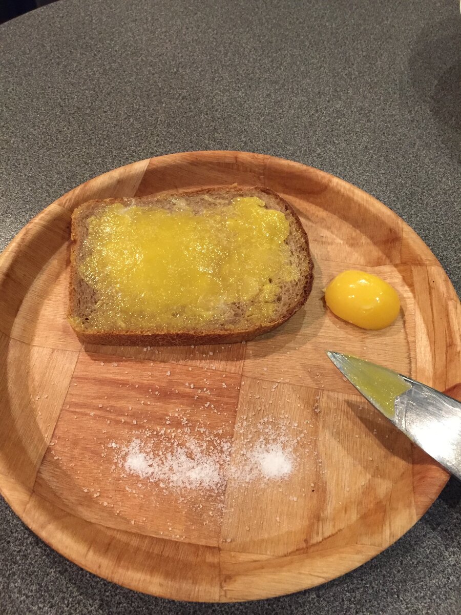 Утром переложил яйцо для медленного оттаивания в холодильник, на целый день. Вечером пришел с работы, разбил яйцо, и что я заметил, белок остался по структуре таким же, а вот желток превратился в упругий шарик. Взял нож и на кончик ножа подковырнул часть желтка , на удивление желток имел эластичную массу а на вкус сливочную, довольно приятную. Отрезал кусок пшеничного хлеба, намазал желток и слегка присолил, съел с удовольствием, на следующий кусок я уже положил сверху сыр, получился отличный бутерброд ! Всем советую попробовать очень необычно и вкусно. Если что то не понятно, пишите в комментариях я обязательно отвечу. Подписывайтесь, следите за каналом, впереди очень много интересных истории и рецептов.