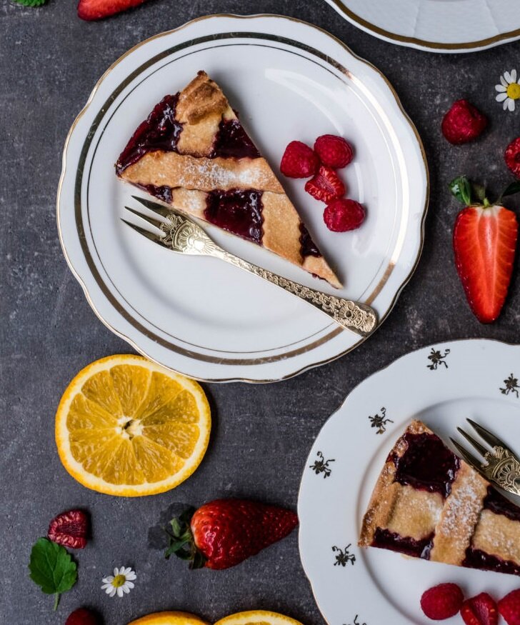 Если и есть кухня, которая мне нравится больше всего, это - итальянская кухня. Пицца, макароны, салаты, морепродукты, а также итальянские десерты просто невероятны, и я не смог устоять перед этими вкусностями. Этот классический пирог из хрустящего теста с мармеладом, как говорят, можно найти в северной Италии в каждой пекарне, и у каждого повара есть рецепт. Я немного волновался, что пирог будет сухим, но в нем было так много мармелада, а в тесте было так много масла, что беспокоиться не пришлось. Это идеальный торт. Простой, быстрый, с минимумом сырья, идеально подходит для завтрака и послеобеденного чая. Ингредиенты: 450 г простой пшеничной муки 225 г сливочного масла 5 желтков 100 г сахарной пудры кора и сок 1 апельсина 1 столовая ложка рома 440 г малинового варенья немного масла и муки Технология приготовления: 1. Разрежьте масло на более мелкие кусочки. 2. Вылейте муку в миску, добавьте масло, яичные желтки, сахар, кору и апельсиновый и ромовый сок. 3. Подготовьте тесто. 4. По