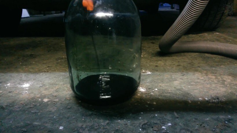 Собственно, уже на этом этапе должно быть понятно, как работает эта конструкция. Остается такую самоделку одеть на банку и подключить шланг пылесоса. С таким вакуумным насосом можно менять масло самостоятельно, при этом не нужно искать яму или отправляться на СТО. Причем откачивать масло можно не только с двигателя, но и коробки передач.