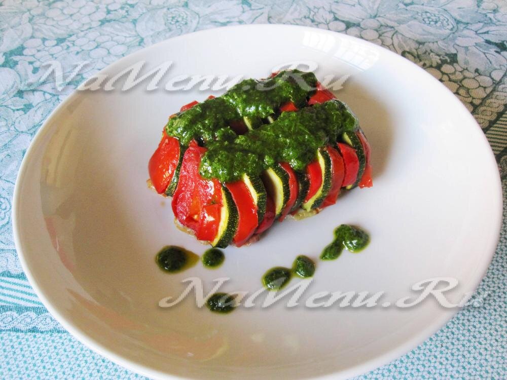 🥄Перемешиваем соус и поливаем им рататуй, который выложен на тарелку