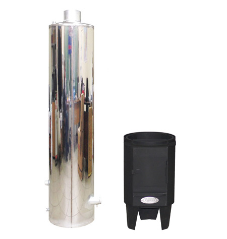 Здравствуйте, сегодня у нас обзор водогрейной дровяной колонки КВЛ НЧ Ермак. Бак и топка дровяной колонки изготавливаются компанией Ермак, расположенной в городе Киров. Дровяная колонка предназначена для организации нагрева воды в местах, где отсутствует горячее водоснабжение. Принцип работы водонагревателя – накопительный. Нагрев воды происходит во время сжигания дров в топке при полном баке. Требуется только подвести к баку холодную воду с минимальным давлением 0,6 атмосфер. Колонка не предназначена для работы под давлением выше 1 атмосферы, перед ее монтажом и использованием обязательно изучите руководство по эксплуатации. Большим плюсом дровяной колонки является возможность ее установки в неотапливаемом помещении. За счет выделяемого колонкой тепла, помещение нагреется до комфортной температуры. Таким образом, ее можно использовать практически круглогодично. Время нагрева воды в дровяной колонке до температуры плюс 40 градусов 30 минут. Комплектация дровяной водогрейной ко