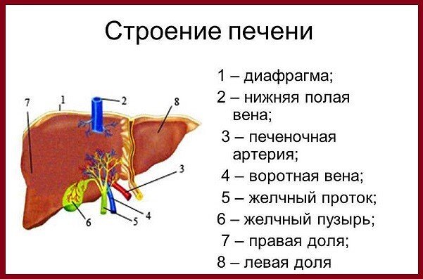 Якоб Бёме. Печень – это самая крупная (1500-1700 гр. у взрослого) железа в системе пищеварения человека, которая располагается в правом подреберье под диафрагмой и в нормальном состоянии не выходит за пределы ребер. Изменение размеров или веса органа свидетельствует о развитии патологических процессов в организме. Печень имеет две доли – левую и правую. Первая часть имеет меньший размер. Печень может полностью восстановиться, при наличии благоприятных условий, даже если ее сохранилось только 25% . Основные функции печени: Метаболизм. В печени происходит расщепление белков до аминокислот, синтез важнейшего соединения – гликогена, в который перерабатываются излишки глюкозы, а также протекает жировой обмен (печень иногда называют «депо жира»). Кроме того, в печени осуществляется метаболизм витаминов и гормонов. Детоксикация. В печени происходит обезвреживание различных токсинов и бактерий. Синтез. В этой железе синтезируется желчь, которая уч