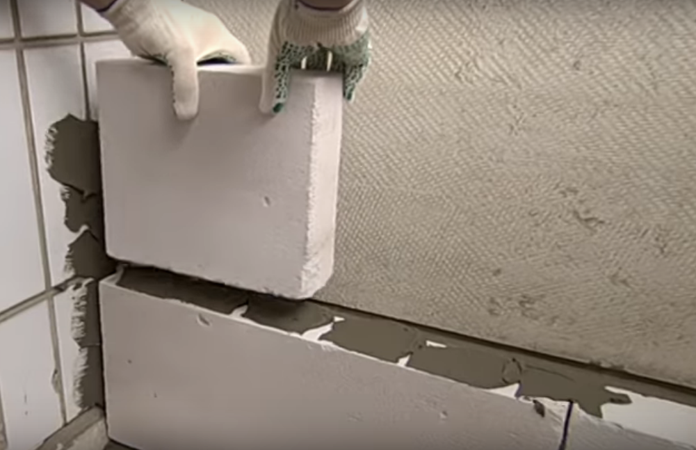 Делаем каркас из железных профилей и монтируем влагостойкий гипсокартон на стены.Замазываем швы и наносим декоративную шпаклёвку.