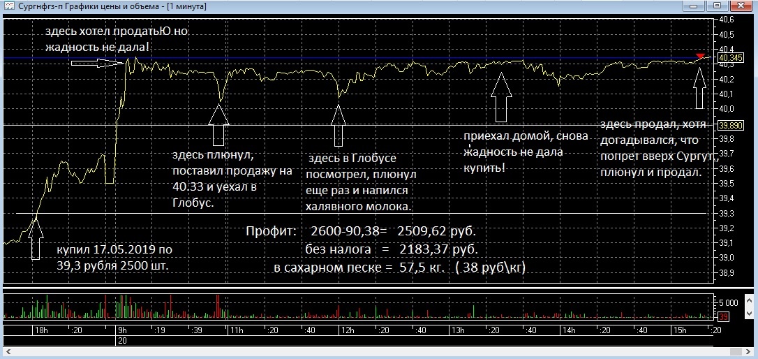 Выводы: Трудно держать позу Сургута преф, когда она тебя окунала три раза на локальные минимумы. На четвертый раз я не удержался и продал.