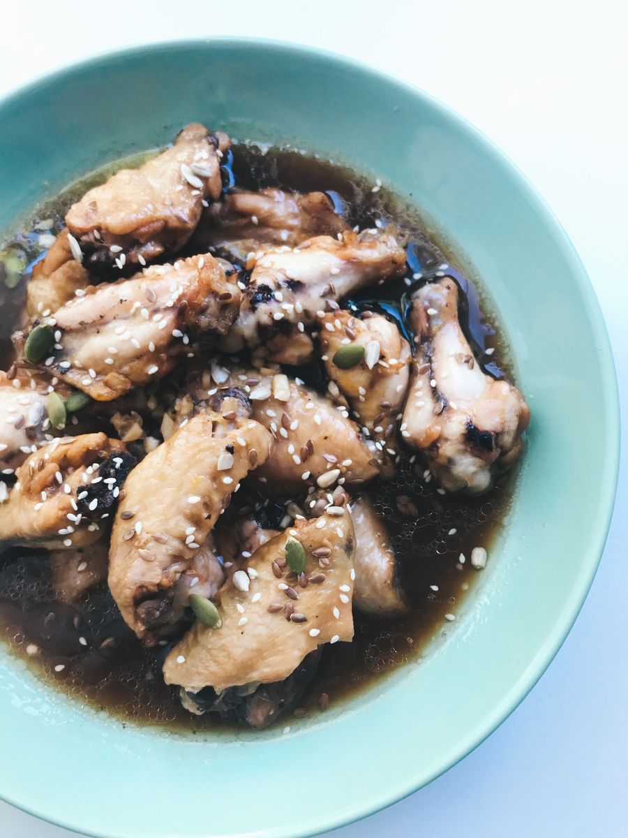 Приготовить просто, а получается вкусно😍Устрой дома свой маленький ресторан) 🍗1 килограмм куриных крылышек разрубить по суставам 🍗смешать в глубокой посуде: 3 столовые ложки соевого соуса, цедру и сок одного лимона, 3 зубчика чеснока мелко порубить, 2 столовые ложки жидкого меда, 2 столовые ложки сахара, щепотка соли 🍗в форму для запекания выкладываем крылья, заливаем получившимся соусом 🍗отправить форму в предварительно разогретую до 200 градусов духовку. 🍗готовить около 45 минут или до зарумянивания и каждые 7-10 минут переворачивать крылышки и поливать соусом 🍗перед подачей можно украсить зеленью или кунжутными семечками 🍋Приятного аппетита😍