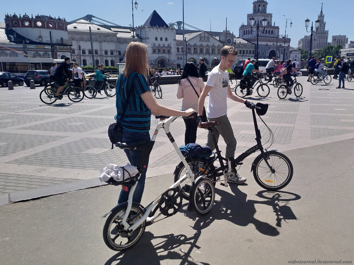 Сбор был назначен на полдень, старт - в 13:00. Выходишь из метро и офигеваешь, на площади трех вокзалов тысячи людей на велосипедах. Они везде! Едут по улицам, выходят из метро наперевес со складными великами, с железнодорожной платформы вообще потоки! У меня аж дар речи пропал, не ожидала такого.