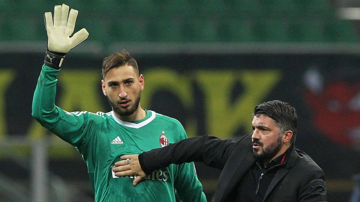 20-летний голкипер помог команде в матче Серии А против Фрозиноне, и главный тренер был рад выразить свою благодарность Дженнаро Гаттузо был благодарен за героизм Джанлуиджи Доннаруммы после того, как Милан добился решающей победы 2:0 над Фрозиноне в воскресенье. Доннарумма отразил пенальти на 50-й минуте от Камилло Чиано при счете 0:0. Голы Пятека и Сузо принесли 3 очка в копилку россонери, чья битва за место в четверке Серии А продолжится до финального тура. "Это была сложная игра, мы знали, что так будет и что Фрозиноне приедет сюда с правильным настроем", - сказал Гаттузо Sky Sport Italia "Мы были напуганы, мы благодарим Джанлуиджи Доннарумму за то, что он вытащил нас из беды." Положение Гаттузо часто подвергалось критике, но он считает, что может еще улучшить свои тренерские позиции, поскольку «Милан» намерен завоевать место в Лиге чемпионов в финальном матче против СПАЛ. "На мой счет было много разговоров, и меня рассматривали на увольнение из команды в предсезонке" -добавил он.